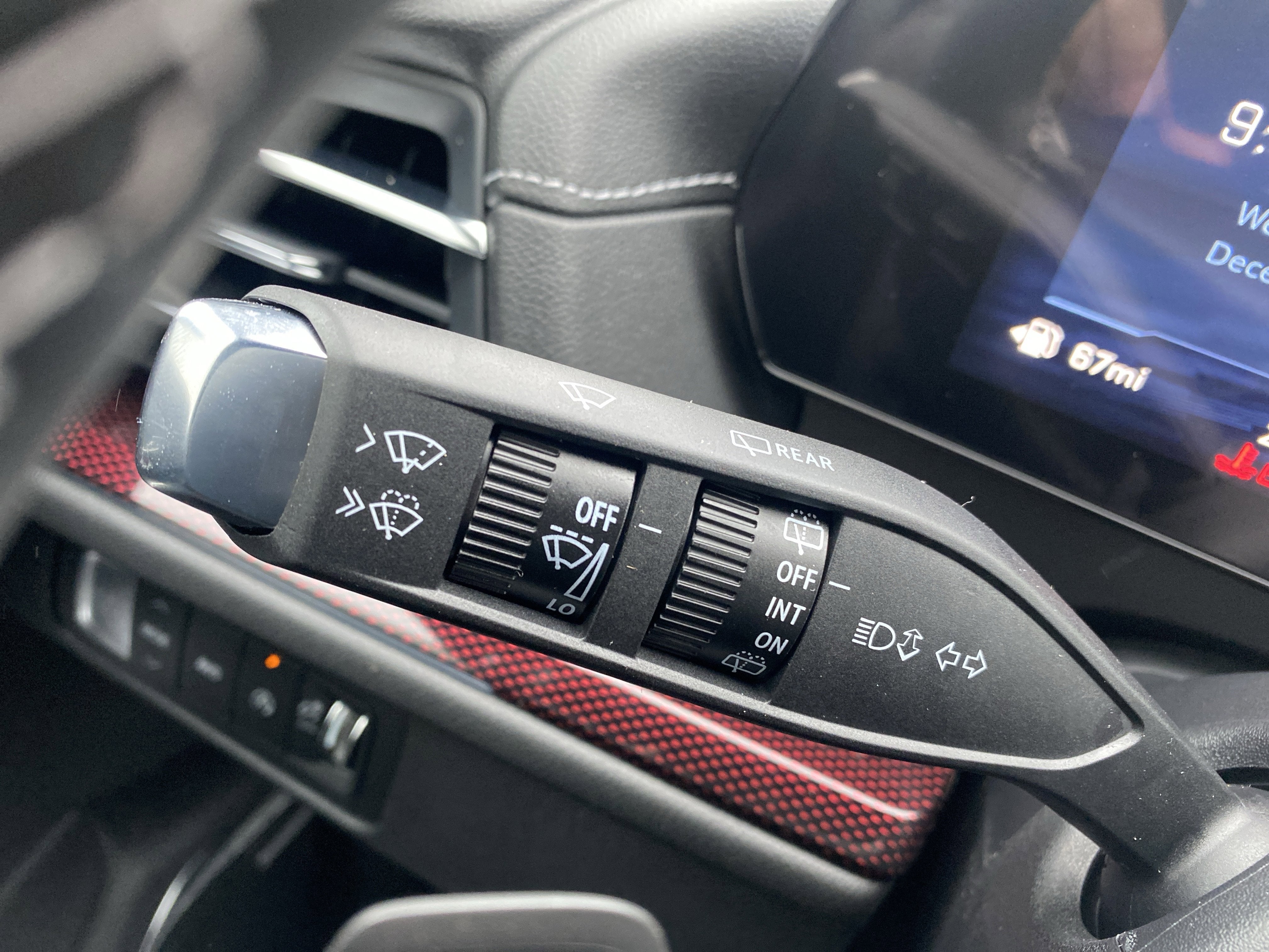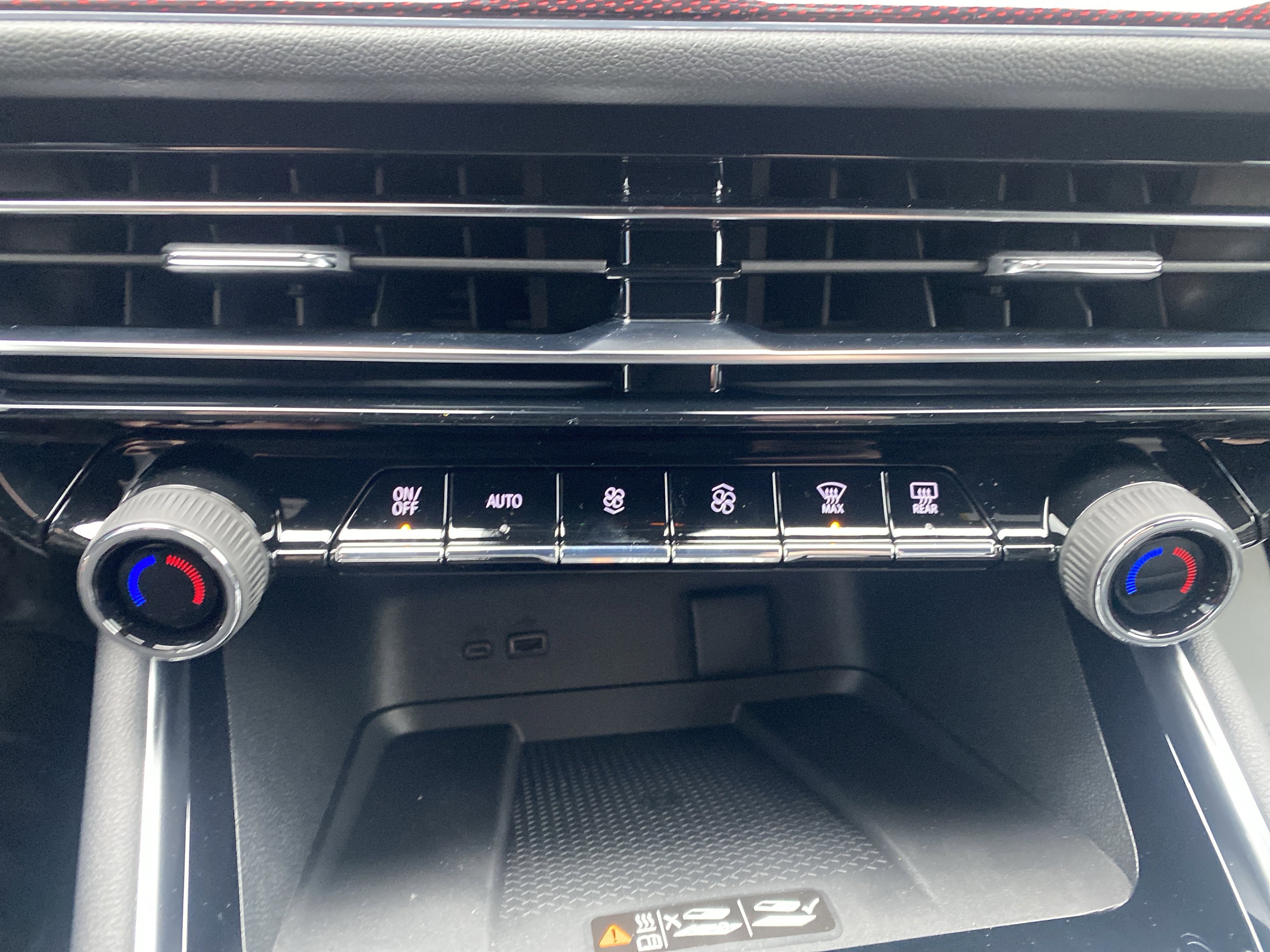 - Auxiliary controls in the rear of the cabin include air delivery mode and temperature up/down settings